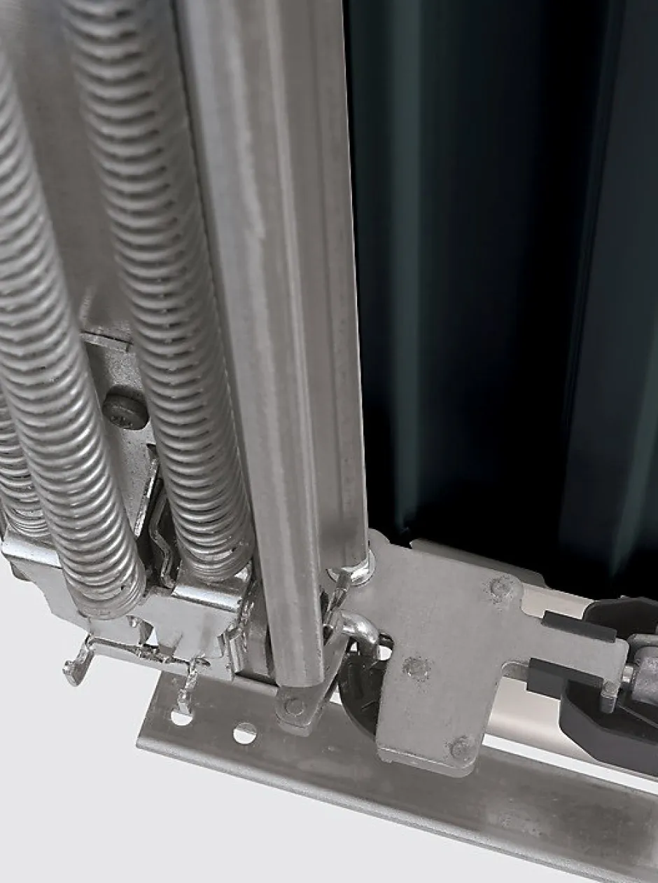 - Les caches de protection flexibles au-dessus des bras de levier ainsi que les listels synthétiques flexibles entre le tablier de porte et le cadre constituent un parfait exemple de l’équipement de sécurité des portes basculantes Berry.