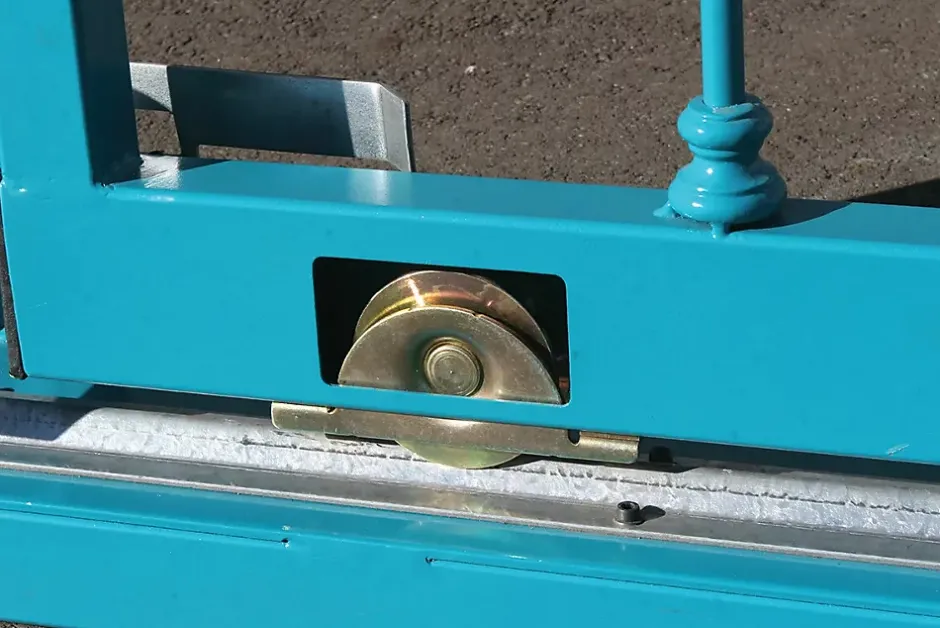 - Installation discrète dans le profil inférieur du portail, seules la partie basse de la roue et les têtes de fixation restent visibles.
