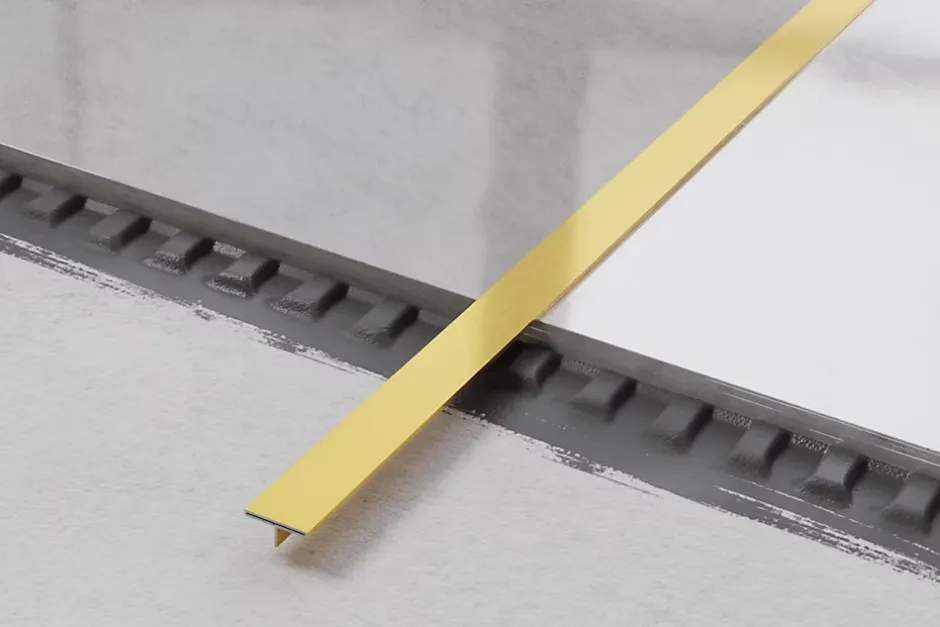 Ilcom Couvre-joint profilé décoratif Ts en inox rectifié Or satiné - 15mm x 2440mm x 0,65 ep.