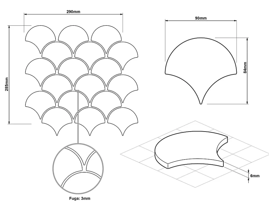 Mosaïque en céramique. Idéal pour une installation murale dans les espaces intérieurs de la maison, mais également excellent pour créer des bandes et/ou des inserts décoratifs car il est facile à couper grâce au maillage. Il s’adapte à toutes les surfaces, droites ou ondulées, également idéal pour les sols. La mosaïque est fournie sur un filet éco-plastique. Spécifications techniques : – Choix : I ; – Antidérapant : non ; – Type de matériau : céramique (La découpe de la céramique est autorisée avec le disque céramique/carrelage.) ; – Dimensions de la plaque : 29cm x 28.5cm; – Taille de la carte : 9cm x 8.4cm; – Épaisseur : 6mm; – Quantité au m² : 12; – Résistant à l’eau ; – Résistant à la chaleur (convient aux saunas, spas et installation à proximité de sources de chaleur, par exemple poêles). Méthode d’installation :- Utilisez votre adhésif de montage spécifique préféré. – Appliquer le mastic époxy. – Laver l’excédent de mastic époxy avec une éponge douce et de l’eau. Traitement: La finition de surface permet un nettoyage facile avec un chiffon en microfibre, pour garantir la durabilité de la couleur dans le temps. Ne pas utiliser de produits abrasifs ou corrosifs. Ne pas frotter ni gratter. Élégance et facilité d’adaptation : La mosaïque en verre trempé se distingue par sa résistance à l’eau et à l’humidité, ce qui la rend parfaite pour une utilisation dans des environnements à forte humidité, tels que les salles de bains, les cuisines et les saunas. Il est idéal pour décorer les murs à côté des des baignoires et des douches. La finition en mosaïque s’intègre parfaitement aux designs modernes et minimalistes, ajoutant une touche d’élégance et de sophistication aux espaces.