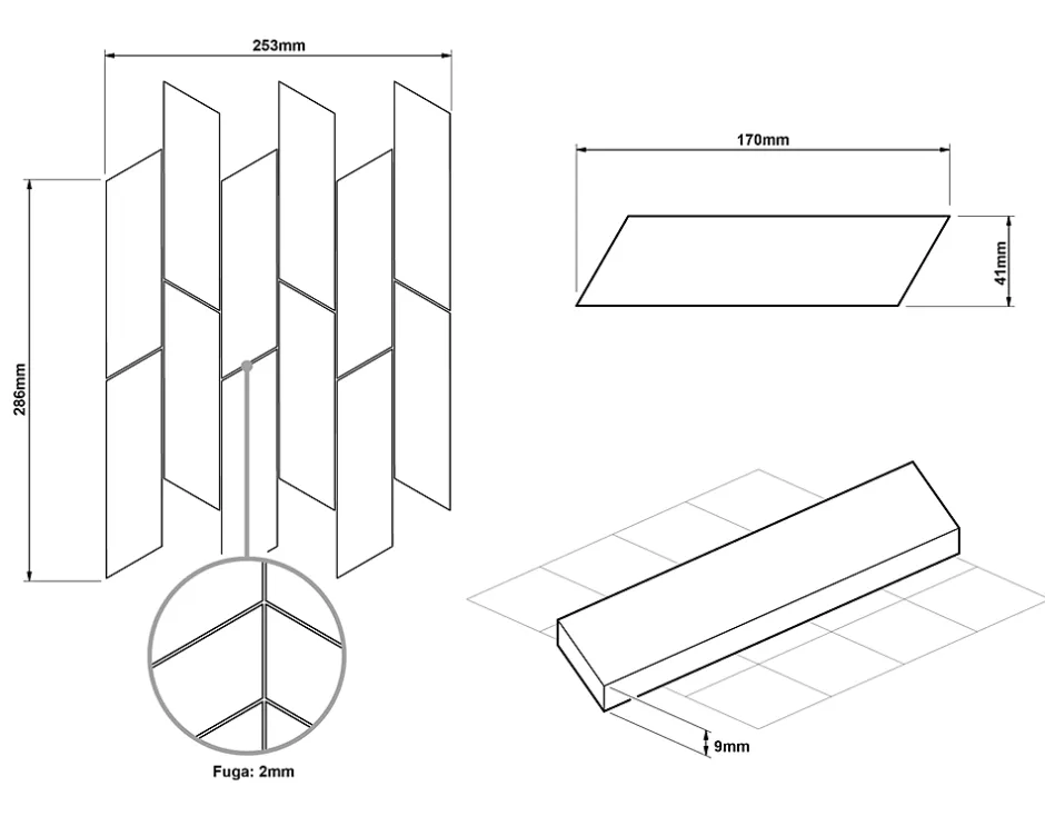 Grès. Idéal pour une pose murale en intérieur, mais également excellent pour créer des lés et/ou des inserts décoratifs car ils sont faciles à découper. Il s’adapte à toutes les surfaces droites et ondulées, également idéal pour les sols. La finition de surface permet un nettoyage facile – L’épaisseur de 9 mm est particulièrement adaptée à la pose en combinaison avec la plupart des carreaux.Dimensions de la plaque : 25,3 x 28,6 cm ;Taille de la carte : 4,1 x 17 cm ;Nombre de plaques par 1m2 : 16 ;Pays de fabrication : Pologne ;Certification : ISO 9001:2015.1. Résistant aux hautes températures et aux rayures ;2. Idéal comme doublure de bain ou de douche;3. Facile à découper grâce à la maille éco-plastique.