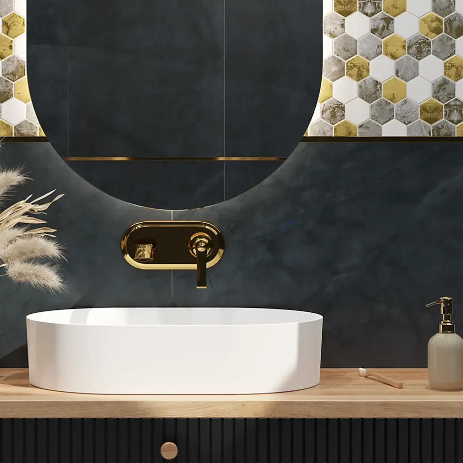 « Mosaïque en verre trempé.Idéal pour une installation murale dans les espaces intérieurs de la maison, mais également excellent pour créer des bandes et/ou des inserts décoratifs car il est facile à couper grâce au filet en cellulose ou en éco-plastique. Convient à toutes les surfaces, droites et ondulées. Spécifications techniques:- Choix : I- Antidérapant : non- Type de matériau : verre trempé (la coupe du verre est autorisée avec une lame diamantée.)- Dimensions de la plaque : 24.7cm x 25.5cm – Taille du papier : 4,6 cm x 5,2 cm;- Épaisseur : 6 mm;- Quantité par m 2 : 16;- Résistant à l’eau- Résistant à la chaleur (convient pour les saunas et près de sources de chaleur, par exemple poêles)Méthode d’installation:- Utilisez votre adhésif de montage spécifique préféré.- Appliquer le mastic époxy.- Laver l’excès de mastic époxy avec une éponge douce et de l’eau. Traitement:La finition de surface permet un nettoyage facile avec un chiffon en microfibre, pour assurer la durabilité de la couleur dans le temps.Ne pas utiliser de produits abrasifs ou corrosifs.Ne pas frotter ou gratter.Élégance et adaptabilité;La mosaïque en verre trempé se distingue par sa résistance à l’eau et à l’humidité, ce qui la rend parfaite pour une utilisation dans des environnements très humides tels que les salles de bains, les cuisines et les saunas. Il est idéal pour décorer les murs à côté de lavabos, baignoires et douches. La finition en mosaïque s’adapte parfaitement aux designs modernes et minimalistes.
