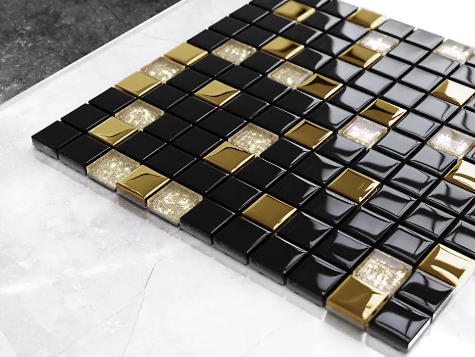 En verre.Idéal pour une pose murale en intérieur, mais également excellent pour créer des lés et/ou des inserts décoratifs car ils sont faciles à découper. Il s’adapte à toutes les surfaces droites et ondulées, également idéal pour les sols.La finition de surface permet un nettoyage facile – L’épaisseur de 8 mm est particulièrement adaptée à la pose en combinaison avec la plupart des carreaux.Taille de l’assiette : 30x30cm ;Nombre de plaques par 1m2 : 11 ;1 plaque de poids (en kg) : 1,4Kg ;Pays de fabrication : Pologne ;Certification : ISO 9001:2015.1. Résistant aux hautes températures et aux rayures ;2. Idéal comme doublure de bain ou de douche;3. Le verre de notre mosaïque a subi un traitement thermique breveté ;4. Facile à découper grâce à la maille éco-plastique.