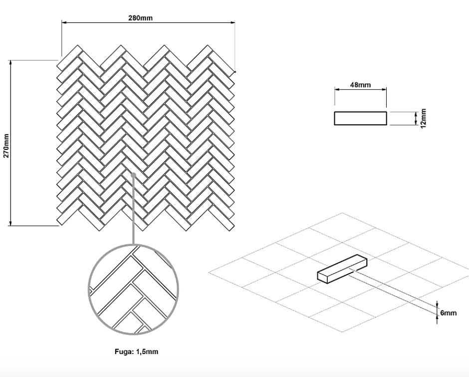 En céramique. Idéal pour l’installation murale dans des environnements intérieurs, mais aussi excellent pour créer des bandes et / ou des inserts décoratifs car il est facile à couper. Il s’adapte à toutes les surfaces, droites et ondulées, également idéal pour les sols. La finition de surface permet un nettoyage facile – L’épaisseur de 6 mm est particulièrement adaptée à la pose en combinaison avec la plupart des carreaux. Taille de la plaque: cm 28 cm x 27 cm; Taille de carreau rectangulaire: 4,8 cm x 1,2 cm; Plaques de quantité pour 1 m² : 11 ; Certification: ISO 9001: 2015. 1. Résistant aux températures élevées et aux rayures; 2. Idéal comme couverture de baignoire ou intérieur de cabine de douche; 3. Facile à couper à la taille grâce au treillis écoplastique.