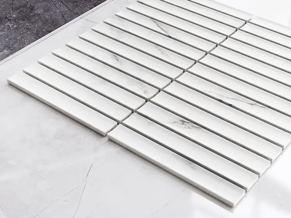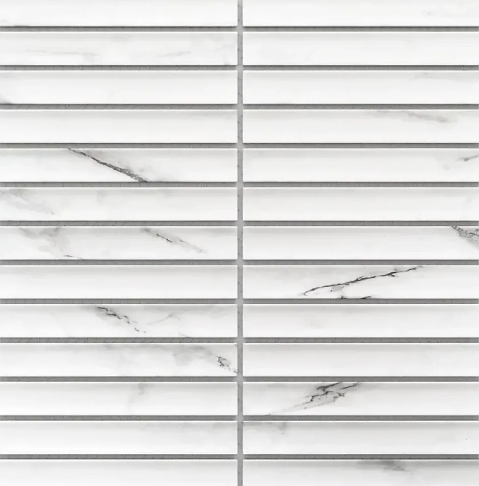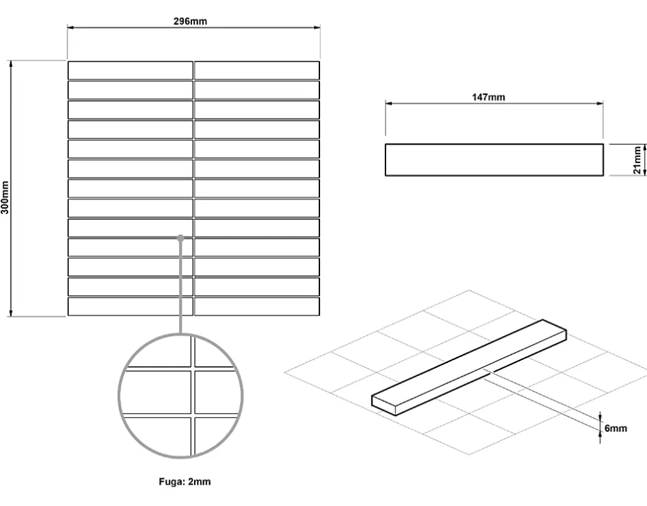 Toutes nos mosaïques sont vendues à feuilles individuelles. Le prix est par pièce.En céramique. Idéal pour la pose murale à l’intérieur de la maison, mais aussi idéal pour créer des lattes et / ou des inserts décoratifs car facile à couper – Il s’adapte à toutes les surfaces droites et ondulées, également idéal pour les sols. La finition de la surface permet un nettoyage facile – L’épaisseur de 6 mm est particulièrement adapté pour être posé en combinaison avec la plupart des carreaux. Épaisseur de la mosaïque : 6mm;Dimension de la carte : 2.1 cm x 14.7 cm;Taille de la plaque : 30 cm x 29,6 cm; Quantité plaques pour 1 m² : 11; Certification : ISO 9001 : 2015. 1. Résistant aux hautes températures et aux rayures; 2. Idéal comme revêtement de baignoire ou cabine de douche; 3. Facile à couper sur mesure grâce au filet.
