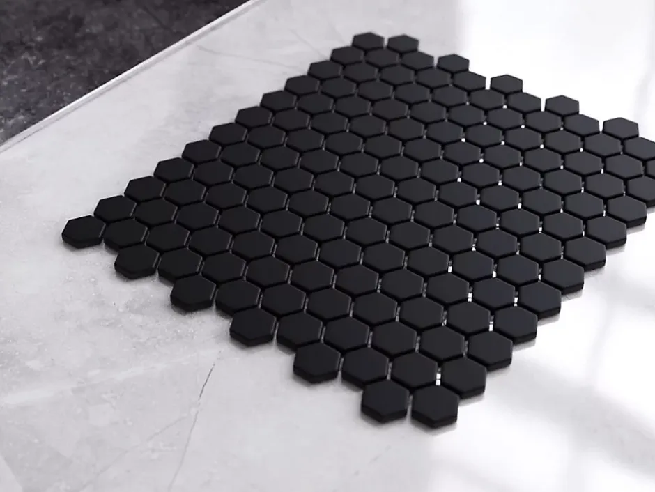 En céramique. Idéal pour l’installation murale dans des environnements intérieurs, mais aussi excellent pour créer des bandes et / ou des inserts décoratifs car il est facile à couper. Il s’adapte à toutes les surfaces, droites et ondulées, également idéal pour les sols. La finition de surface permet un nettoyage facile – L’épaisseur de 5 mm est particulièrement adaptée pour être posée en combinaison avec la plupart des carreaux. Taille de la plaque: cm 30 cm x 26 cm; Taille hexagonale du carreau: 2,2 cm x 2,2 cm; Plaques de quantité pour 1 m² : 13 ; Certification: ISO 9001: 2015. 1. Résistant aux températures élevées et aux rayures; 2. Idéal comme couverture de baignoire ou intérieur de cabine de douche; 3. Facile à couper à la taille grâce au treillis écoplastique.