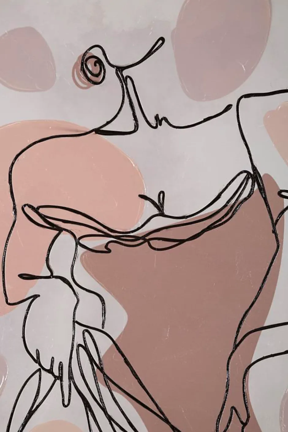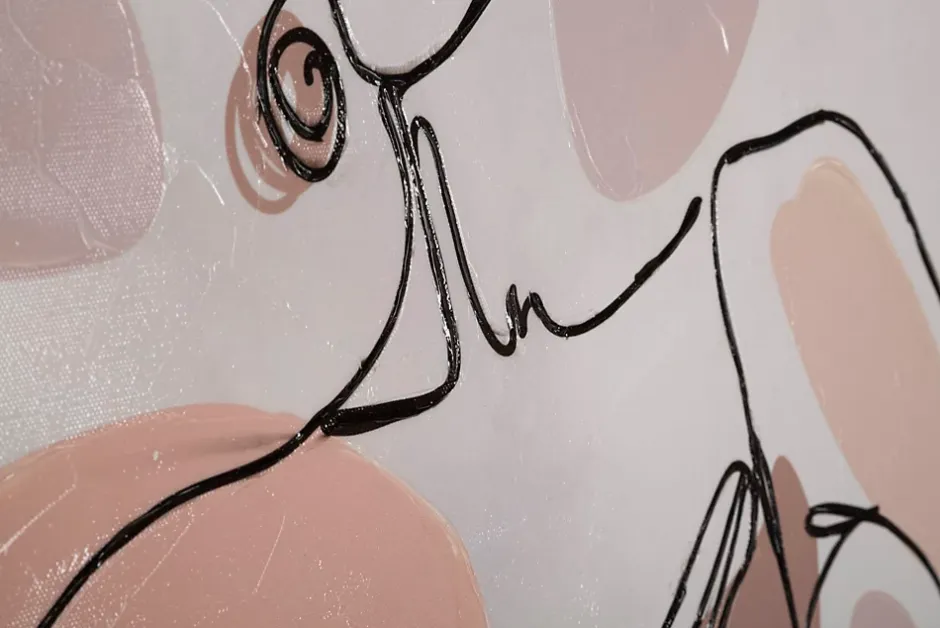 Impression sur toile peinte sur cadre en bois représentant une femme aux traits expressionnistes. Dimensions : 80 x 80 cm, épaisseur : 2,8 cm.