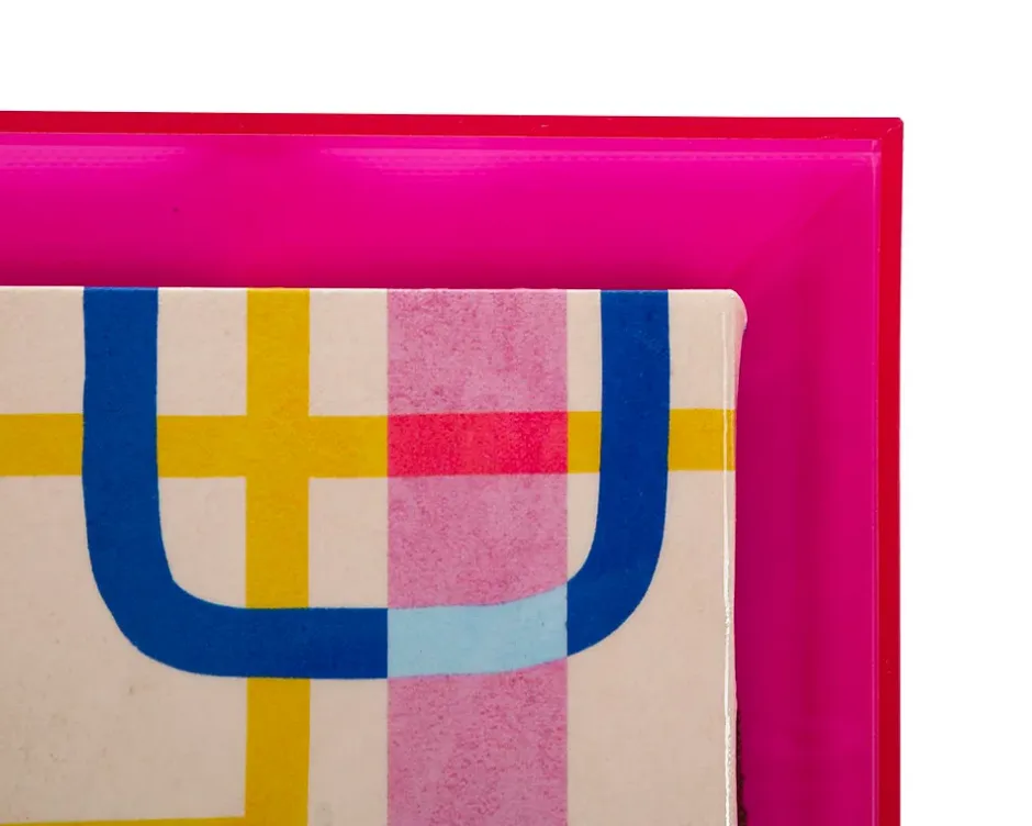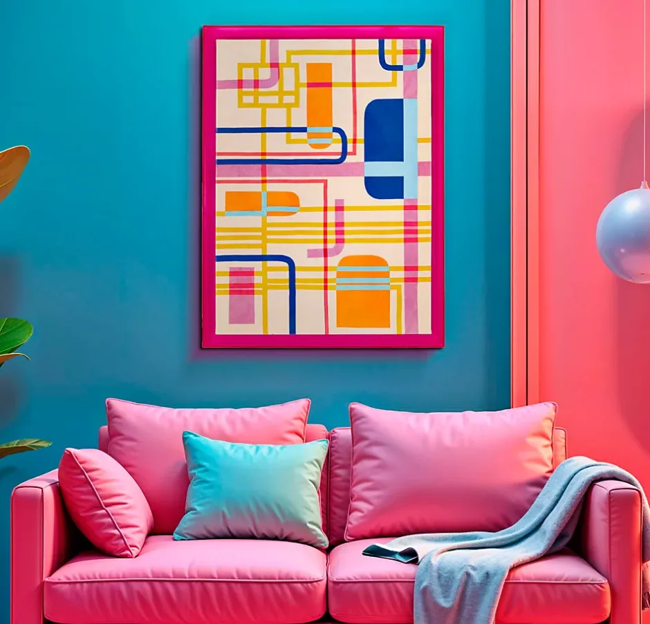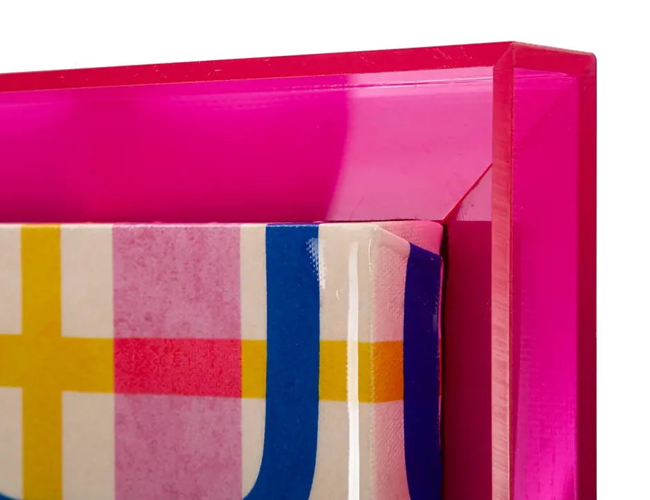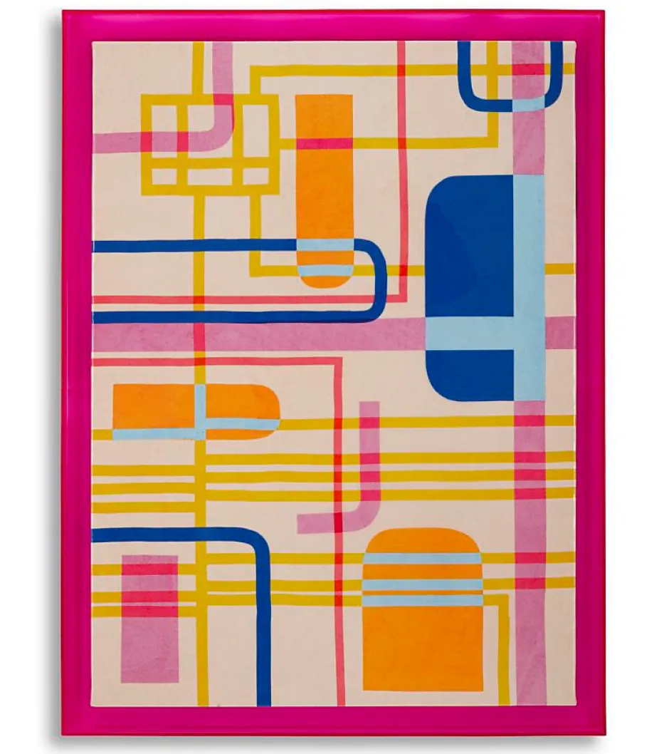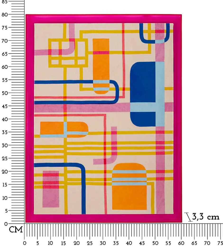 Impression sur toile encadrée en plexiglas, au motif abstrait et dynamique, conçue pour ceux qui recherchent une décoration originale et dynamique. Les couleurs vibrantes et les lignes entrelacées apportent énergie et style à tout espace, le rendant unique et créatif. Dimensions : 60 x 80 x 3,3 cm.