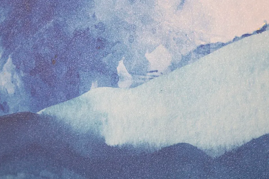 Impression sur toile encadrée en bois représentant un paysage de montagne expressionniste, apportant une touche d’élégance à tout espace. Dimensions : 80 x 120 cm, épaisseur du cadre : 3 cm.
