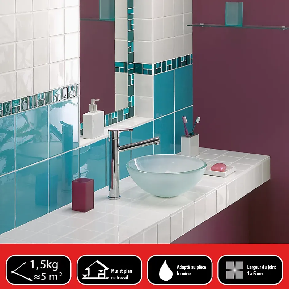 Joint prêt à l’emploi permettant la réalisation de joints de 1 à 6 mm sur carrelage en mur intérieur ou plan de travail. Recommandé en cuisine et salle de bains. Finition ou rénovation. Coloris écru (beige).Très résistant à l’eau. Application facile. Finition impeccable. Idéal pour rénover facilement les joints abîmés. Idéal en cuisine ou salle de bains.