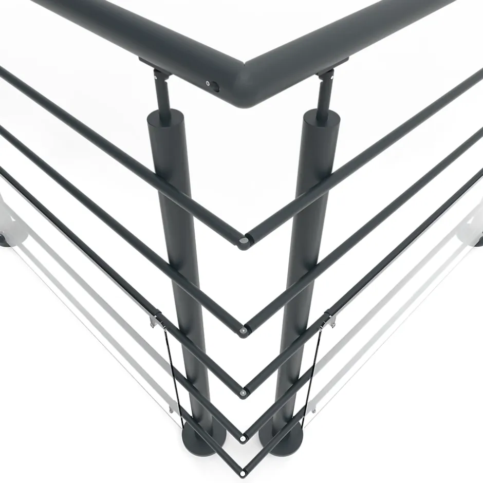 Usage intérieur et extérieur. Assure une continuité de la main courante et des lisses dans les angles.
