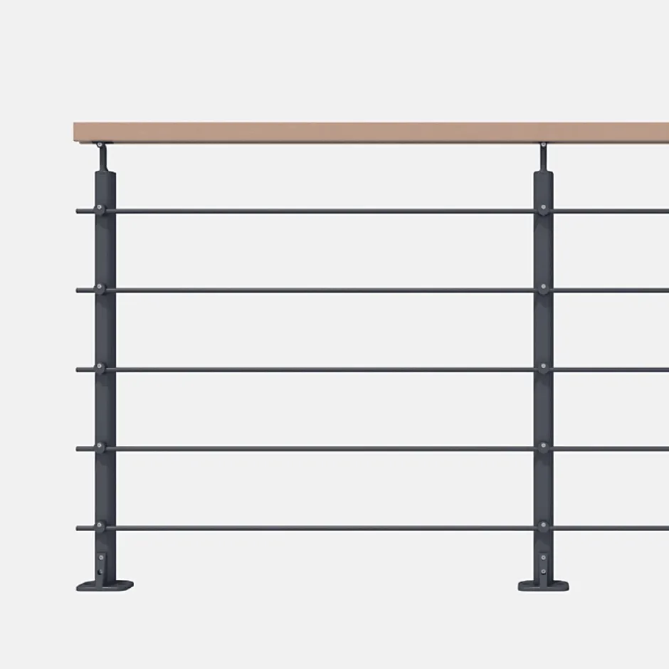 Le garde-corps Opalu est une solution prêt-à-poser, simple à installer, avec un design épuré. Ce garde-corps allie un aluminium gris anthracite (RAL 7016) à une main courante en hêtre, conçu pour une fixation à plat en intérieur uniquement. Opalu est disponible en 3 coloris avec 3 options de mains courantes (bois/aluminium) et en fixation à plat ou latérale.Ce kit permet d’installer 2 mètres linéaires de balustrade. Il est possible d’assembler plusieurs kits ensemble. Chaque élément est recoupable avec une scie à métaux pour s’adapter aux longueurs souhaitées. Pour finir votre ouvrage, un poteau supplémentaire de finition est à prévoir en supplément. Nous estimons le temps de pose à environ 1h par mètre linéaire. Dimensions : Dimensions kit complet : 78 x 1004 x 2000 mm Dimensions poteau : 75 x 110 x 975 mm Dimensions tubes : 10 x 10 x 2000 mm Dimensions main courante : 40 x 40 x 2000 mm Composition du kit : 2 poteaux avec platines de fixation 1 main courante 2 mètres en hêtre 5 tubes de remplissage avec assembleurs, capuchons de finition 2 goupilles élastiquesAccessoires complémentaires : 1 poteau de finition Panneaux de protection pour la mise en conformité à la norme de sécurité Pour les éventuels angles, prévoir des kits d’angle Visserie de fixation au sol non fournie à choisir selon la nature de votre solPour assurer la conformité aux normes de sécurité NF P 01-012 et NF P 01-013, il convient d’ajouter des panneaux de protection transparents à votre ouvrage si la hauteur de chute est supérieure à 1m. Pas obligatoire pour les montées d’escalier. Entraxe poteaux max 1000 mm.