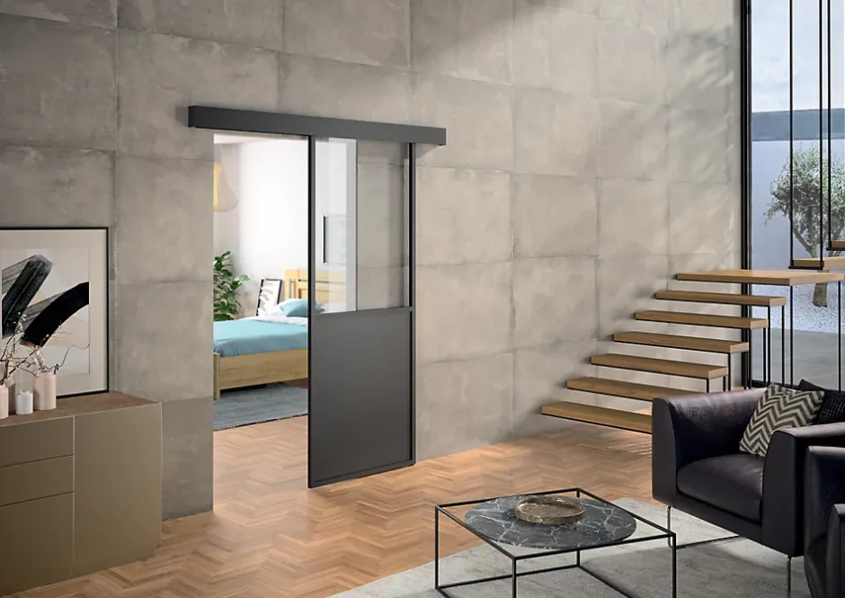 Porte coulissante Verre ESG et aluminium 102×205 cm Noir, 29.11 kg-Vidaxl Clearance
