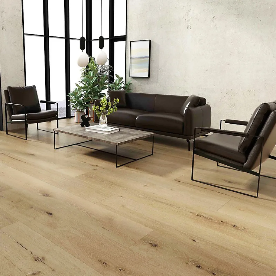 Le sol PVC rigide à clipser SPC 18,4×122 cm ESSENTIEL MIEL avec sous-couche intégrée est un revêtement qui allie esthétique et confort. Sa teinte miel chaude et lumineuse imite parfaitement l’aspect du bois naturel, apportant une ambiance chaleureuse et accueillante à vos espaces de vie. Grâce à son système de clips, ce sol est facile à poser, offrant ainsi une solution rapide et pratique pour ceux qui souhaitent moderniser leur intérieur.La sous-couche intégrée assure un confort optimal en améliorant l’isolation phonique et thermique de vos pièces, tout en offrant une surface agréable sous les pieds. Ce sol est résistant à l’eau, ce qui le rend idéal pour les salles de bain, les cuisines ou les pièces à fort passage comme le salon. Sa finition mate et texturée lui donne un aspect naturel et raffiné, tout en étant facile à entretenir et durable.Côté décoration, le ESSENTIEL MIEL s’accorde parfaitement avec des meubles en bois naturel ou en métal, créant un joli contraste entre la chaleur du sol et la modernité des meubles. Il peut être associé à des textiles doux et légers comme des tapis en laine ou des rideaux en lin, pour un effet cosy et convivial. Que vous souhaitiez créer un espace scandinave, contemporain ou même industriel, ce sol PVC est un excellent choix pour apporter luminosité et chaleur à vos pièces. Il est à la fois durable, facile à entretenir et offre un confort quotidien inégalé grâce à sa sous-couche intégrée.