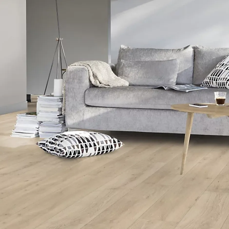 Lame vinyle Gerflor Creation 55 rigid acoustic à clipser – spécial rénovation • Creation 55 Rigid acoustic Gerflor est un revêtement de sol PVC en lames, silencieux, idéal pour la rénovation lourde • Classement européen 33 – 42 : adapté à un usage industriel normal, entièrement recyclables, ils contiennent jusqu’à 35% de composants recyclés. Fabrication CE Résistant à l’humidité, convient aux pièces d’eau : salle de bain et cuisine. • Chanfrein : Oui, sur les 4 côtés • Chauffage au sol : Oui • Classe COV : A+ • Classe Formaldéhyde : E1 • Classement Européen : 42 : Usage Industriel léger – Classe 42 : Trafic général – Classe 33 : Trafic intense (magasin, couloir, bureau open-space) • Classement UPEC : U3P3E2C2 • Classement feu : Bfl-s1 (ancienne norme M3) • Comportement électrostatique : – de 2kV • Conductivité thermique : 0,25 W/mK • Epaisseur couche d’usure : 0,55 mm • Epaisseur matière : 6 mm • Fabrication : Européenne • Garantie : 15 ans en usage résidentiel • Groupe d’abrasion : T • Isolation phonique : 19 dB • Largeur d’une lame : 17,7 cm • Longueur d’une lame : 121,92 cm • Nombre de lames par paquet : 8 • Poids d’un paquet : 17,1 kg • Poids total : 9480 g/m² • Pose : Flottante – sans colle – Clic à plat • Résistance à l’usure : < 2.0 mm³ (EN 660.2) • Résistance au glissement : R10 • Résistance au poinçonnement : 0,10 mm • Résistance aux chaises à roulettes : Oui (type H) • Résistance chimique : Bonne • Solidité à la lumière : 6 • Sonorité à la marche : 81 dB • Stabilité dimensionnelle : 0,05% (norme 0,15%) • Surface par paquet : 1,726 m² • Traitement de surface : ProtechShield