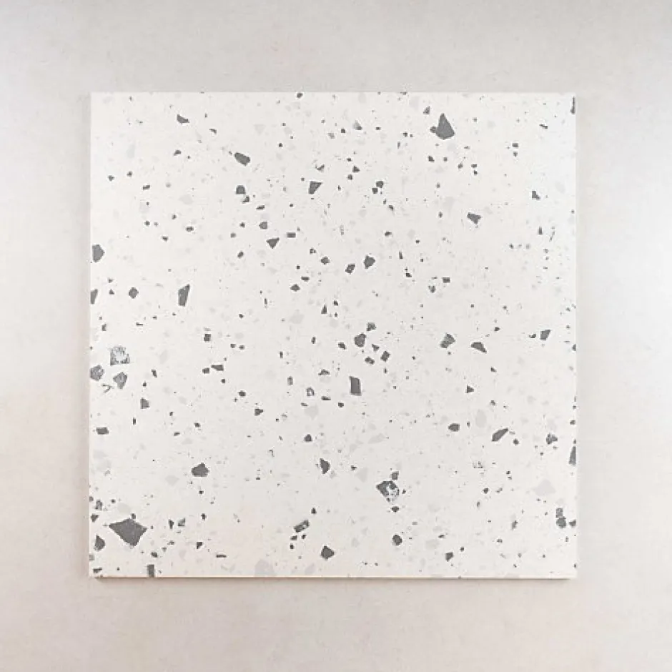 Ces carreaux effet terrazzo reproduisent l’aspect moucheté des sols en pierre et marbre d’autrefois. Leur style sobre et naturel s’accorde facilement avec tous types d’intérieurs, que ce soit dans une cuisine, une salle de bain ou une pièce à vivre.Il est conseillé de prévoir environ 10 % de carreaux supplémentaires pour les coupes et les ajustements lors de la pose.