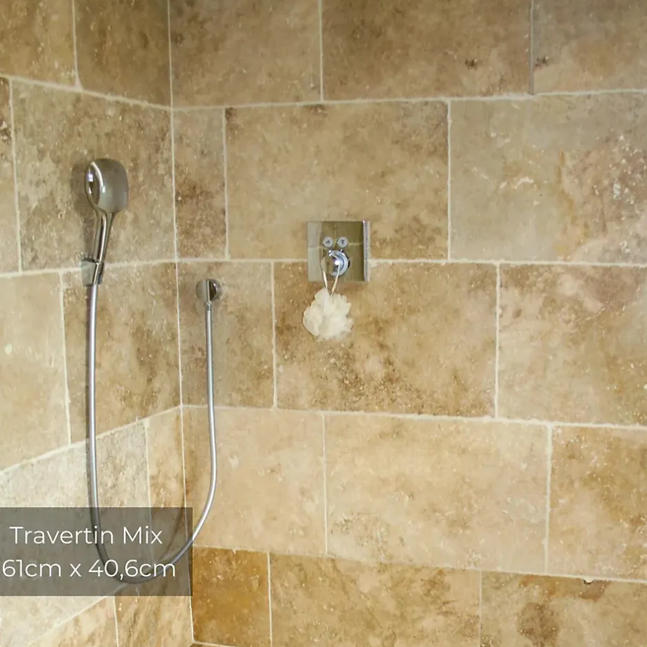 Apportez à vos espaces tout le charme authentique de la pierre naturelle avec ce dallage en travertin Premier Choix Mix 61 x 40,6 x 1,2 cm.Issu de carrières situées en Turquie, ce travertin est une pierre calcaire naturelle reconnue pour sa robustesse et sa durabilité. Le classement Premier Choix Mix garantit une surface homogène, sans trous traversants, tout en conservant les nuances naturelles beige clair à brun qui font le caractère unique du travertin.Avec son épaisseur de 1,2 cm, ce format est idéal pour les aménagements intérieurs et extérieurs nécessitant élégance et légèreté. Compatible avec le chauffage au sol, résistant au gel et conforme aux normes antidérapantes R10 / R11, il assure confort et sécurité au quotidien.Dimensions :61 cm (L) x 40,6 cm (l) x 1,2 cm (épaisseur) Produit vendu au m² – livré sur palette.La livraison de cet article est effectuée par camion 19 tonnes, équipé d’un hayon et d’un transpalette manuel. Le déchargement s’effectue à l’arrière du camion uniquement.Merci de vérifier avant votre commande que :- l’adresse de livraison est accessible à un camion 19 tonnes- la voie d’accès ne présente pas de restriction de tonnage ou d’accès- une zone de réception accessible est disponible pour le déchargementUn de nos collaborateurs pourra vous contacter afin de valider l’accessibilité du lieu de livraison et convenir d’un rendez-vous.Afin de faciliter la livraison, merci de rester joignable au numéro renseigné lors de votre commande.