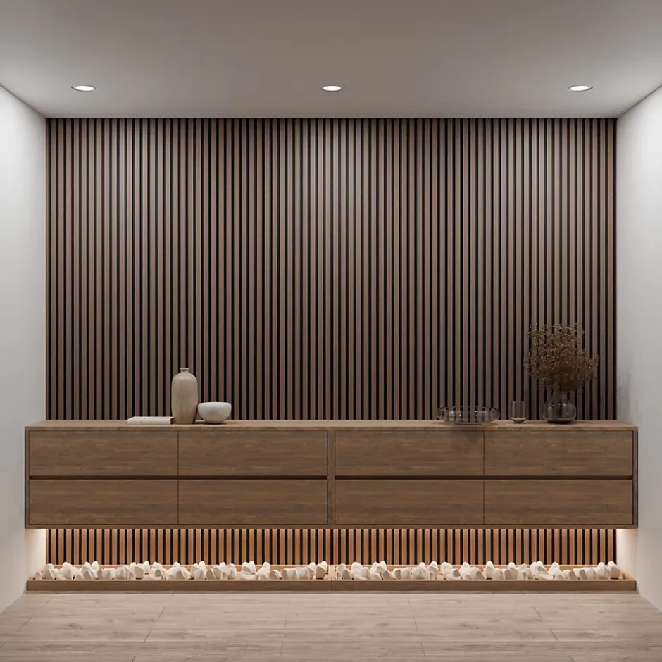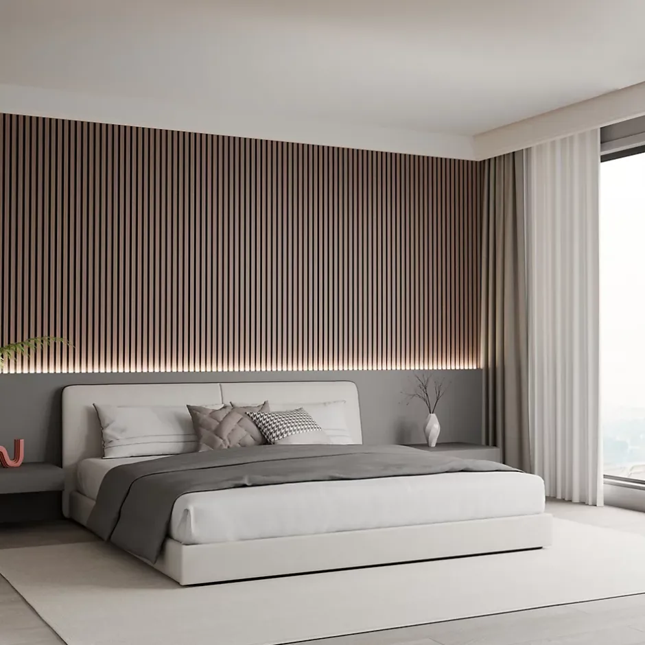 Alliant performance acoustique et esthétique contemporaine, nos panneaux acoustiques souples constituent une solution idéale pour améliorer le confort sonore de vos espaces tout en apportant une finition décorative soignée.Caractéristiques techniques :Dimensions : 240 cm x 60 cmÉpaisseur : 1,1 cmSurface couverte : 1,44 m² par panneauPoids : 5 kgMatériaux : feutrine + lattes MDF plaquéesFixation : colle silicone ou visUtilisation : isolation et traitement acoustiqueCompatibilité : tous types de pièces (habitation, bureau, usage professionnel)Structure et matériauxLes panneaux se composent de deux couches principales :Une base en feutrine acoustique permettant une absorption efficace des sons et une réduction des nuisances sonores.Une finition en lattes de MDF (fibre de bois à densité moyenne), recouvertes d’un placage esthétique et résistant, offrant un rendu élégant et durable.Amélioration acoustiqueGrâce à leur structure multicouche, ces panneaux réduisent efficacement les résonances et réverbérations. Ils sont adaptés à de nombreux environnements : bureaux, studios, open-spaces, salons, salles de réunion ou home cinéma.Installation simple et rapideLeur conception légère (5 kg) permet une pose facile sur murs ou plafonds à l’aide de colle silicone ou de vis. Aucun encadrement spécifique n’est nécessaire.Découpe conseillée : pour ajuster les panneaux aux dimensions souhaitées, l’utilisation d’une scie circulaire est recommandée afin d’obtenir une coupe nette et précise.EntretienDépoussiérage à l’aide d’un balai ou d’un aspirateur avec embout douxEn cas de taches : chiffon propre, humide et bien essoréÉviter les produits abrasifs