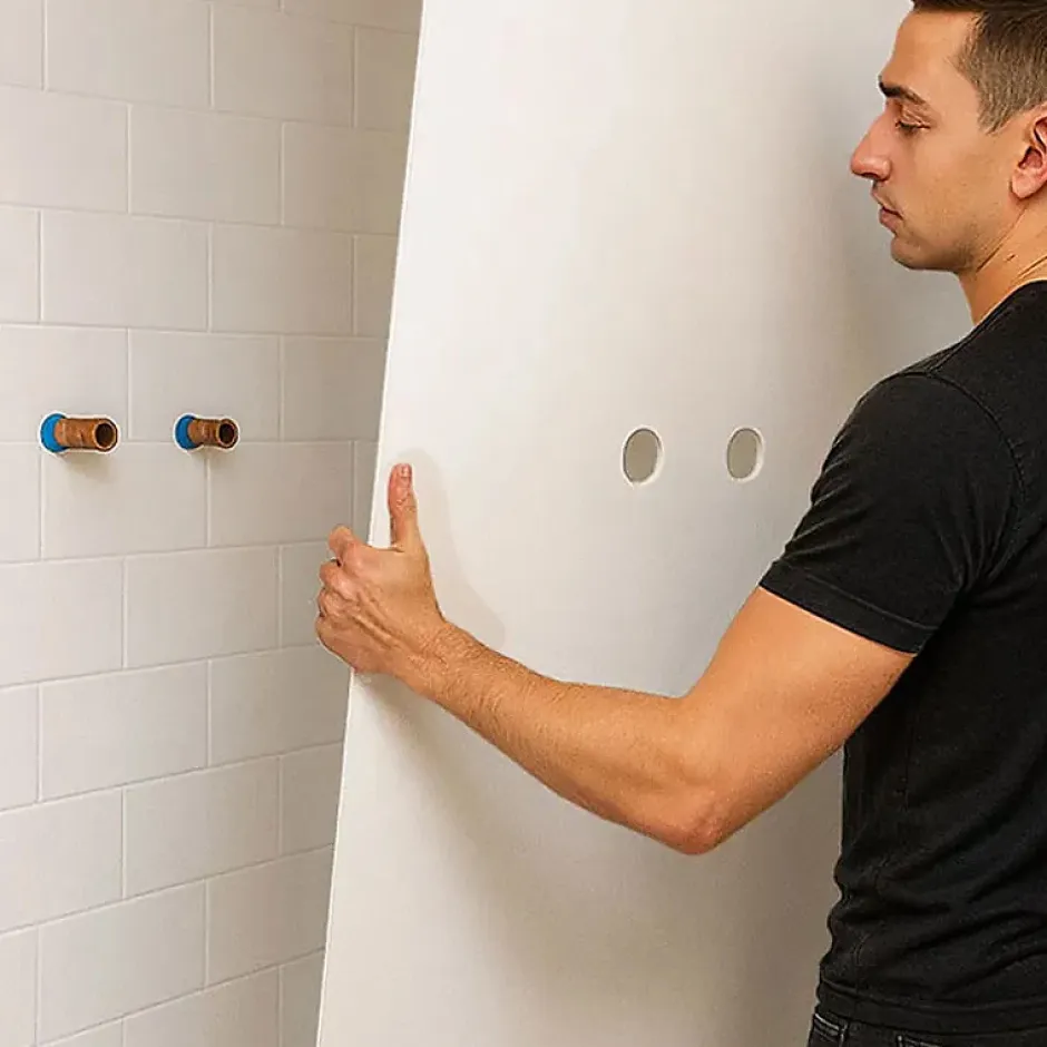 Panneaux muraux de douche en PVC premium de 3 mm et profilés – Faciles à poser et à nettoyer (Fabrication française) Protégez et modernisez votre salle de bain avec ce pack de panneaux muraux, résistants, élégants et prêts à poser. Alternative contemporaine à la faïence murale, ces panneaux en PVC de 3 mm offrent une solution rapide, pratique et durable pour habiller vos murs de douche. Leur finition apporte un rendu premium tout en facilitant l’entretien au quotidien. Points forts : Pack complet : 2 panneaux (90×220 cm et 120×220 cm) + 3 profilés (2 profilés de finition et 1 profilé d’angle). Pose rapide : installation rapide pour un résultat propre et durable. Découpe facile : une découpe à la scie cloche est conseillée pour l’installation de la robinetterie. Raccordables : panneaux raccordables à droite ou à gauche selon la configuration de votre douche. Supports compatibles : Placo, carrelage existant, faience, toile de verre, bois, béton. Conception française : Dessiné dans notre studio graphique et fabriqué dans notre atelier à Agen (47 – France) Caractéristiques : Couleur des panneaux : blanc Couleur des profilés : blancDimensions des panneaux : 90×220 cm et 120×220 cm Matériau : PVC qualité premiumÉpaisseur : 3 mm Entretien : compatible raclette silicone, micro-fibre, éponge douce et eau chaude (pas de produits abrasif) -> si besoin ajouter du vinaigre blanc. Étanchéité : Joints silicone : appliquez un joint silicone entre les panneaux, le receveur et les profilés. Une solution élégante, durable et simple à installer pour transformer votre espace douche.