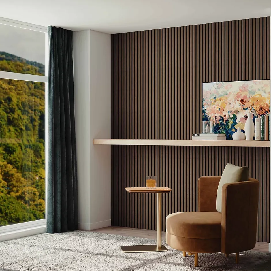 Lot de 2 Panneaux Muraux Décoratifs Acoustiques Bois MDF 120x60cm Noyer AntiBruit, Facile à Poser-AICA Sanitaire Clearance