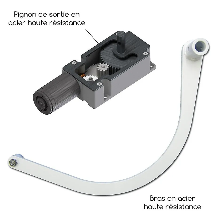 Lot de 5 motorisations en linteau pour volets battants Commande filaire avec interrupteur Baie de 800 à 1500 mm (2 vantaux) Carter blanc et bras blanc Fabriqué en France Garantie : 2 ans Quantité : 5 Attention : Volet non compris dans le kit. Lot de 5 motorisations pour volets battants WINEO filaire – baie de 800-1500 mm – carter blanc – bras blanc pour 5 paires de volets battants.En neuf ou rénovation, WINEO vous permet de conserver vos volets existants et s’adapte sur tous types de volets battants simple ou double vantaux.Pour plus de détails, consultez la notice de pose. Spécifications à respecter : – Largeur du vantail : 40 cm min / 80 cm max- Surface max du vantail : 1,6 m²- Poids max du vantail : 50 kg- Largeur tableau : 15 cm- Distance max axe du gond / bord de la baie : cote A (voir abaque des bras)- Distance max mur / volet extérieur : cote B (voir abaque des bras)- Distance min haut du volet / haut de l’écharpe : 90 mm- Pour C ≥ 150 mm : utiliser les bras W1 (livrés dans le kit)- Pour C ≥ 100 mm : utiliser les bras W2 ou W3 (disponibles en pièces détachées ) Description : – Kit complet prêt à la pose pour équiper 5 paires de volets battants.- Recoupable : mise en place rapide et facile.- Discret : carter extra-plat de 50 mm de hauteur, en aluminium.- Performant : 1 bloc moteur par vantail.- Résistant : bras et pignon de sortie en acier haute résistance.- Sécurité : détection d’obstacle.- Pilotage possible par une domotique (nous consulter).- Produit sans entretien.- Installation Plug and Play (programme d’apprentissage).- Conforme à la norme NF P26-341. – Produit conçu et fabriqué dans nos ateliers en France, testé unita