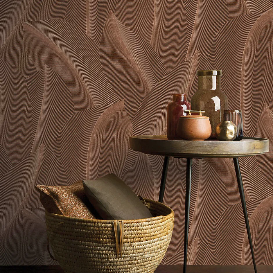 Papier peint vinyle intissé Allure Lutece mat et satiné effet Cuivre feuilles marron, rouille l.1005 x l.53 cm