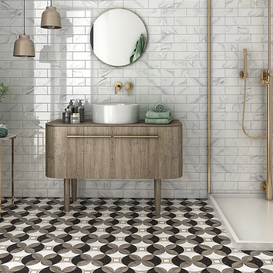 Petits carreaux pour décorer les murs de votre salle de bains, cuisine ou restaurant. Dans un bel effet élégant et intemporel de marbre de Carrare avec une finition brillante et des veines grises