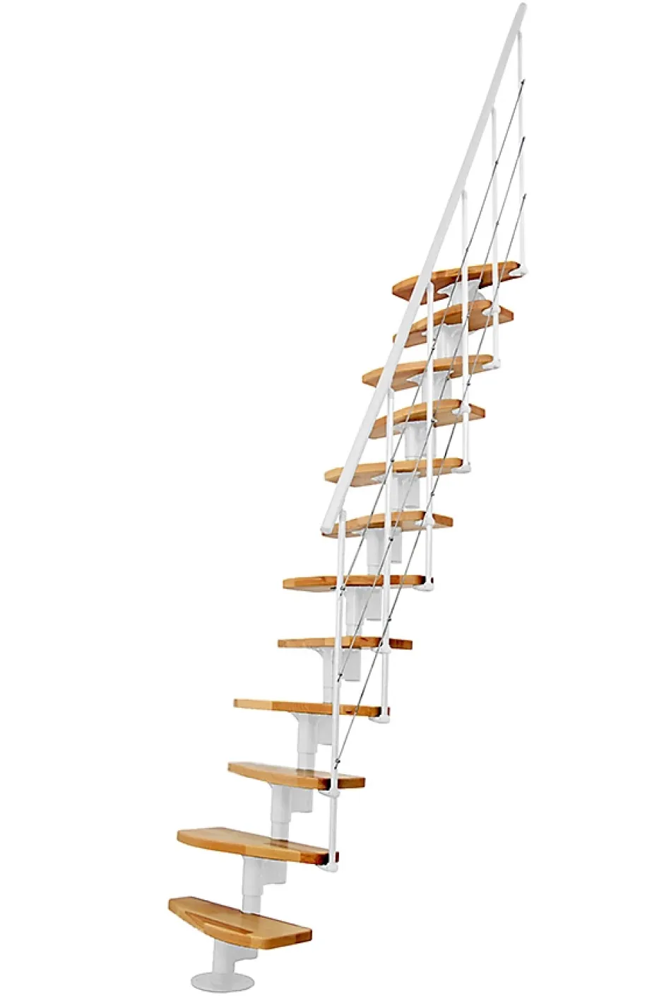 ESCALIER DESIGN- L’escalier d’intérieur droit en bois et acier est une solution simple et design pour accéder à un étage ou une mezzanine- Le mélange du bois massif et de l’acier offre des contemporaine à votre intérieur.- Peut s’intégrer dans un duplex au style Loft ou dans une maison moderne.- Sa conception droite permet d’optimiser l’espace en réalisant un espace de rangement ou de décoration sous l’escalierESPACES REDUITS- Escalier d’intérieur d’une largeur de 0.60 mètres pour des habitations avec des espaces réduits.- Passer d’un étage à un autre ou un espace en hauteur comme dans des appartements parisiens qui ont une surface réduite.HAUTEUR REGLABLE- Régler la hauteur en faisant varier la hauteur de la fixation sur la structure au moment du montage.- Pour une configuration spécifique, n’hésitez pas à nous adresser vos côtes (hauteur sous plafond et épaisseur de dalle) et photos de l’emplacement de l’escalier.STRUCTURE ET RAMPE BLANCHE- Structure en acier peint par poudrage et rails inférieurs de la rampe en acier inoxydable.- La rampe garantit un accès sécurisé lors de la montée et de la descente.- Rampe avec des poteaux reliés entre eux par 3 lisses rigidesMARCHES EN HÊTRE- Marches en bois de hêtre avec une finition laqué.- Designe des marches qui permet un gain de place au sol.MAIN-COURANTE PVC- Main-courante en PVC- Garantie un accès sécurisé lors de la montée et de la descenteINSTALLATION FLEXIBLE- Escalier qui peut se ligne droite ou en le tournant légèrement vers la gauche ou la droite.- Choix d’installation lors du montage.- Permet d’éviter un obstacle : mur, meuble, ouverture de porte…TREMIE- Trémie minimum requise : 125 x 65cm- La hauteur de passage entre l’escalier et le plafond doit être au minimum de 220 cm, pour un passage libre confortable.