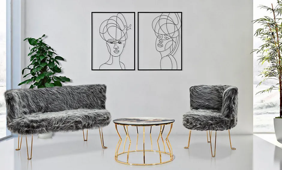 Paire de panneaux métalliques décoratifs 3D représentant des visages féminins enfermés dans un cadre rectangulaire. Dimensions : 60 x 80 cm, épaisseur : 1 cm.