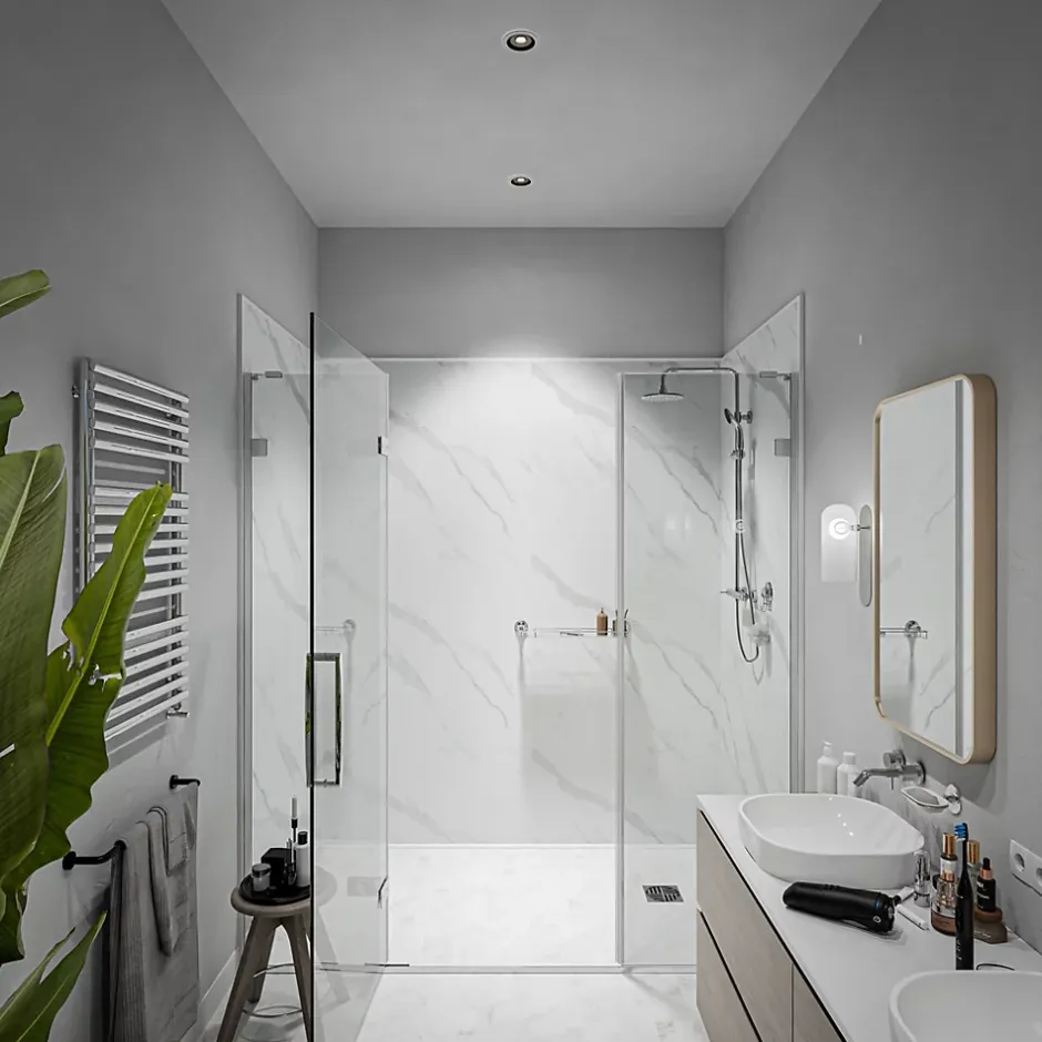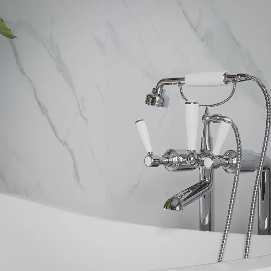 Un panneau mural PVC esthétique & décoratif Offrez un coup de jeune à votre salle de bain avec le panneau mural PVC imitation marbre Calacatta . Avec sa finition mate et lisse , il sublime vos espaces et offre une solution décorative pratique, durable et esthétique . Le design du panneau de douche PVC, fidèle au marbre naturel, apporte un côté luxueux et haut de gamme. Finition mate Un panneau de rénovation pour salle de bain mais pas seulement ! Idéals pour la rénovation des cabines de douche et des murs, les panneaux PVC de douche et de salle de bain permettent de transformer les espaces facilement et rapidement. Les panneaux d’habillage et de rénovation peuvent se poser directement sur les surfaces existantes , y compris le carrelage.Le panneau mural PVC ne se limite pas qu’aux salles de bains. Il peut aussi être installé dans les cuisines, les toilettes ou bien encore les buanderies. C’est un revêtement mural 100 % étanche qui convient aux pièces humides sans aucun problème. D’un mètre de largeur, un seul panneau d’habillage permet de recouvrir une grande surface de mur. Un panneau de douche PVC facile d’installation & d’entretien Nos panneaux muraux de douche PVC sont faciles à installer , ne nécessitant aucune compétence ni outil particulier pour leur mise en place. Grâce au système d’emboitement mâle/femelle , vous pouvez connecter les panneaux sans effort.Une fois posé, profitez d’un mur flambant neuf, sans l’inconvénient des joints sales ou effrités. L’entretien est aussi un jeu d’enfant, les panneaux se nettoient à l’éponge et résistent aux tâches ainsi qu’aux rayures.Pour une finition parfaite des panneaux de douche PVC , optez également pour nos accessoires : <a href= »https://monmarchedeco.com/produit/profil-de-finition-10-m