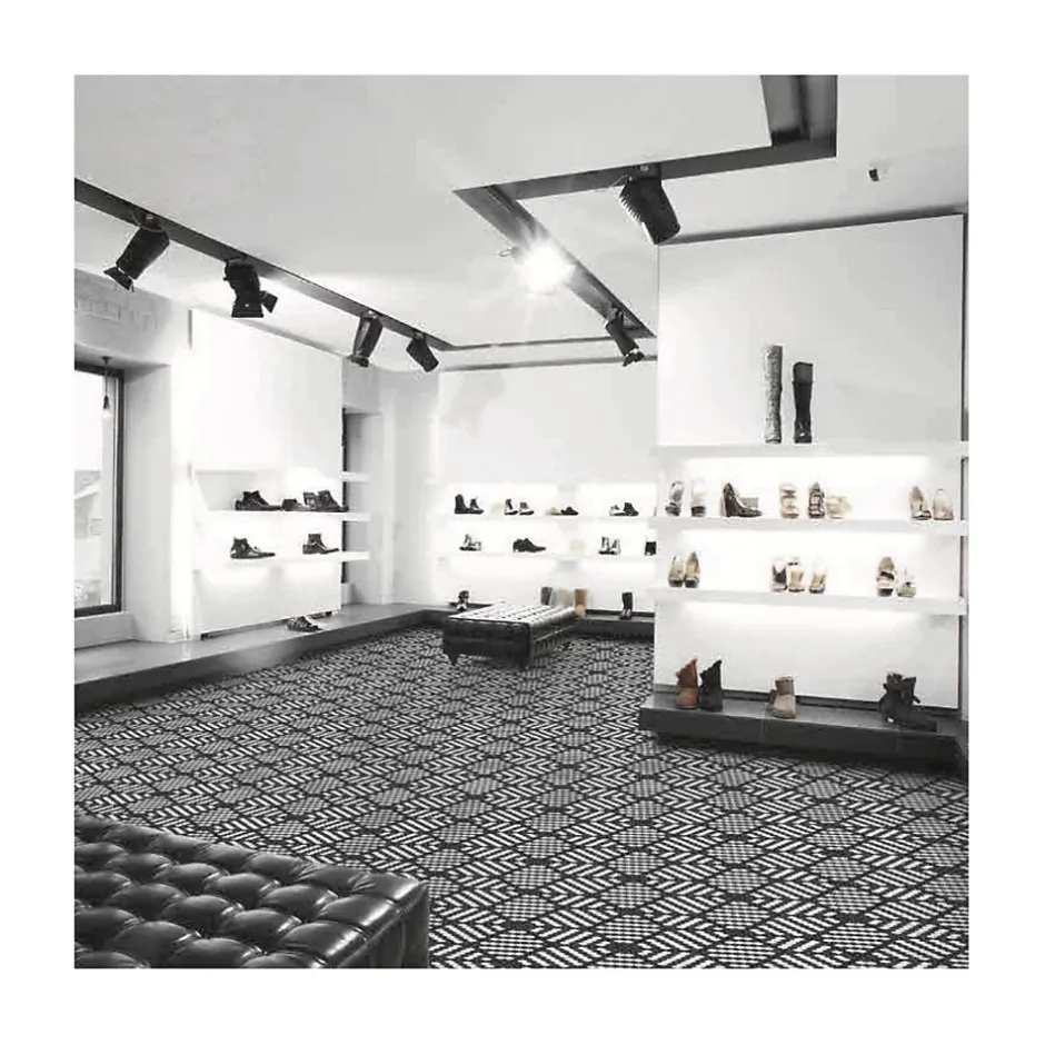 Couleurs : noir (réf101) et blanc (ref103)Format : hexagone 2,6×2,2cm (sur trame 33,3×33,3cm) Épaisseur : 0,4cmSupport : trame nylonFinition : satiné
