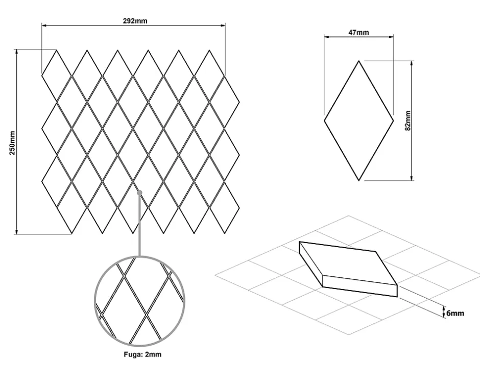 n verre. Idéal pour la pose murale dans les intérieurs de la maison, mais aussi excellent pour créer des lattes et / ou des inserts décoratifs car facile à couper – Il s’adapte à toutes les surfaces droites et ondulées, idéal également pour les sols.La finition de surface permet un nettoyage facile. type de décoration : montage mural/piscine/cuisine/salle de bain ; Matériau : verre ; Type de finition : métallisé / brillant ; mesure plaque :265cmx305cm ; Carreaux de diamant : 4,7 cm x 8,2 cm ; l’épaisseur de la mosaïque : 6 mm ; Quantité de plaques par 1 m 2 :13 ; Certification ISO 9001 : 2015 ; Résistant aux hautes températures et aux rayures; Idéal comme revêtement de baignoire ou cabine de douche;Le verre de notre mosaïque a subi un traitement thermique breveté; Facile à couper sur mesure grâce au filet en éco-plastique ou cellulose.