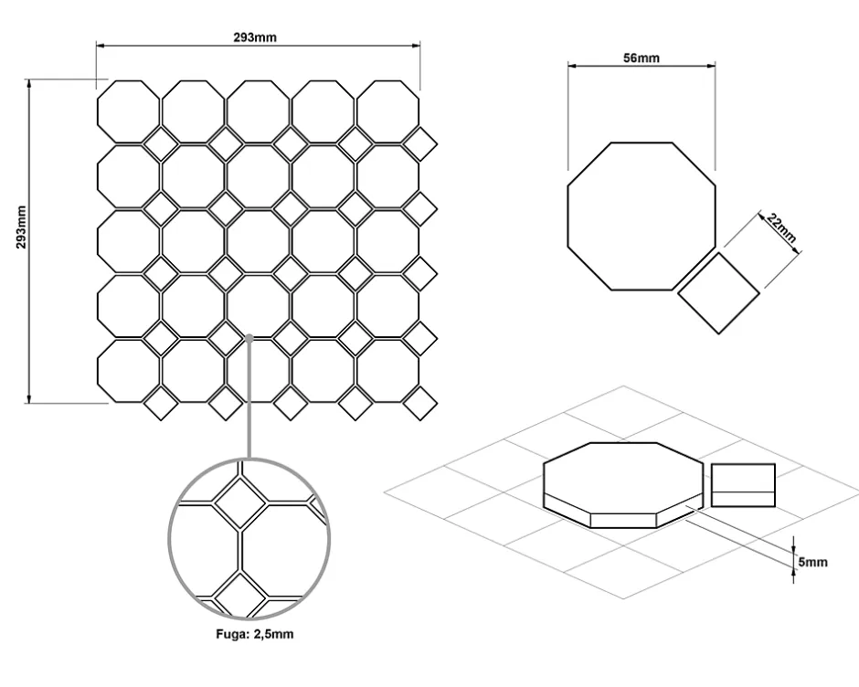 Mosaïque en céramique. Idéal pour une installation murale dans les espaces intérieurs de la maison, mais également excellent pour créer des bandes et/ou des inserts décoratifs car il est facile à couper grâce au maillage. Il s’adapte à toutes les surfaces, droites ou ondulées, également idéal pour les sols. La mosaïque est fournie sur un filet éco-plastique. Spécifications techniques : – Choix : Je ; – Antidérapant : non ; – Type de matériau : céramique (La découpe de la céramique est autorisée avec le disque céramique/carrelage.) ; – Dimensions de la plaque : 29.3cm x 29.3cm; – Taille de la carte : 5.6cm x 5.6cm/2.2cm x 2.2cm; – Épaisseur : 5mm; – Quantité au m² : 12; – Résistant à l’eau ; – Résistant à la chaleur (convient aux saunas, spas et installation à proximité de sources de chaleur, par exemple poêles). Méthode d’installation :- Utilisez votre adhésif de montage spécifique préféré. – Appliquer le mastic époxy. – Laver l’excédent de mastic époxy avec une éponge douce et de l’eau. Traitement: La finition de surface permet un nettoyage facile avec un chiffon en microfibre, pour garantir la durabilité de la couleur dans le temps. Ne pas utiliser de produits abrasifs ou corrosifs. Ne pas frotter ni gratter. Élégance et facilité d’adaptation : La mosaïque en verre trempé se distingue par sa résistance à l’eau et à l’humidité, ce qui la rend parfaite pour une utilisation dans des environnements à forte humidité, tels que les salles de bains, les cuisines et les saunas. Il est idéal pour décorer les murs à côté des des baignoires et des douches. La finition en mosaïque s’intègre parfaitement aux designs modernes et minimalistes, ajoutant une touche d’élégance et de sophistication aux espaces.