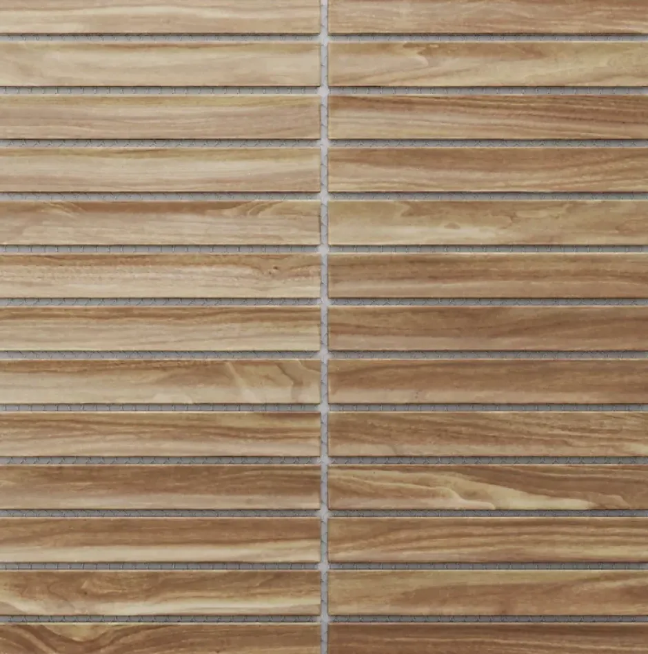 Mosaïque en céramique. Idéal pour une installation murale dans les espaces intérieurs de la maison, mais également excellent pour créer des bandes et/ou des inserts décoratifs car il est facile à couper grâce au maillage. Il s’adapte à toutes les surfaces, droites ou ondulées, également idéal pour les sols. La mosaïque est fournie sur un filet éco-plastique. Spécifications techniques : – Choix : I ; – Antidérapant : non ; – Type de matériau : céramique (La découpe de la céramique est autorisée avec le disque céramique/carrelage.) ; – Dimensions de la plaque : 29.6cm x 30.0cm; – Taille de la carte : 14.7cm x 2.1cm; – Épaisseur : 6mm; – Quantité au m² : 12; – Résistant à l’eau ; – Résistant à la chaleur (convient aux saunas, spas et installation à proximité de sources de chaleur, par exemple poêles). Méthode d’installation :- Utilisez votre adhésif de montage spécifique préféré. – Appliquer le mastic époxy. – Laver l’excédent de mastic époxy avec une éponge douce et de l’eau. Traitement: La finition de surface permet un nettoyage facile avec un chiffon en microfibre, pour garantir la durabilité de la couleur dans le temps. Ne pas utiliser de produits abrasifs ou corrosifs. Ne pas frotter ni gratter. Élégance et facilité d’adaptation : La mosaïque en verre trempé se distingue par sa résistance à l’eau et à l’humidité, ce qui la rend parfaite pour une utilisation dans des environnements à forte humidité, tels que les salles de bains, les cuisines et les saunas. Il est idéal pour décorer les murs à côté des des baignoires et des douches. La finition en mosaïque s’intègre parfaitement aux designs modernes et minimalistes, ajoutant une touche d’élégance et de sophistication aux espaces.