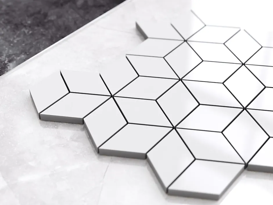 Grès. Idéal pour une pose murale en intérieur, mais également excellent pour créer des lés et/ou des inserts décoratifs car ils sont faciles à découper. Il s’adapte à toutes les surfaces droites et ondulées, également idéal pour les sols. La finition de surface permet un nettoyage facile – L’épaisseur de 9 mm est particulièrement adaptée à la pose en combinaison avec la plupart des carreaux. Taille de la plaque : 26,5 x 30,5 cm ; Nombre de plaques par 1m2 : 14 ; Poids 1 plateau (en kg) : 1,1Kg ; Pays de fabrication : Pologne ; Certification : ISO 9001 : 2015. 1. Résistant aux hautes températures et aux rayures ; 2. Idéal comme doublure de bain ou de douche; 3. Facile à découper grâce à la maille éco-plastique.