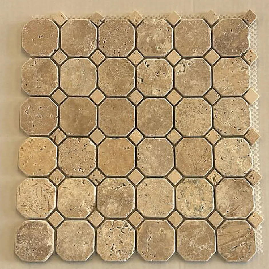Le Travertin est réputé pour sa résistance et sa durabilité, ce noble matériau renait pour décorer nos espaces de vie actuels. Grâce aux différentes caractéristiques, la mosaïque vous apportera une touche d’élégance naturelle et épurée à votre intérieur. Sa texture et ses nuances naturelles quant à elles apporteront une douceur intemporelle et indémodable à vos espaces de vie. La mosaïque est versatile, elle s’utilise en crédence, en frise ou en un mur complet et s’adapte harmonieusement aux différentes décorations intérieures des pièces de votre maison : cuisine, salle de bains, terrace…Grâce à son caractère et sa nature, le travertin reste un matériau naturel ce qui explique les éventuelles variations de couleurs, de textures, de dimensions et d’aspect final entre les produits présentés et ceux livrés. Ces variations liées à l’esthétique n’altèrent pas les caractéristiques techniques des produits. Caractéristiques : Effet : Mat vieilli Couleur : Travertin Foncé Matières : TravertinConditionnement : Puces : 4,8X4,8 – 1,5X1,5 / Plaque 30,5×30,5 Destination : Tous types de surfaces Pose : Au sol et aux murs Épaisseur : 10mm (1cm) Largeur de joint conseillé (standard) : 2mm ✅ Les atouts du travertin : Matériau naturel et durable : Vous permet d’avoir une part durable de la nature dans vos espaces de vie. Entretien facile : Le travertin ne nécessite pas de produits spécifiques pour l’entretenir. Il suffit juste de l’imperméabiliser régulièrement (conseil), et de nettoyer vos surfaces avec de l’eau et du savon doux. Une myriade de choix : Le travertin et le marbre sont des matériaux versatiles. En mosaïque ou en carrelage, les nuances et les couleurs vous donneront la liberté de décorer vos intérieurs selon vos goûts.