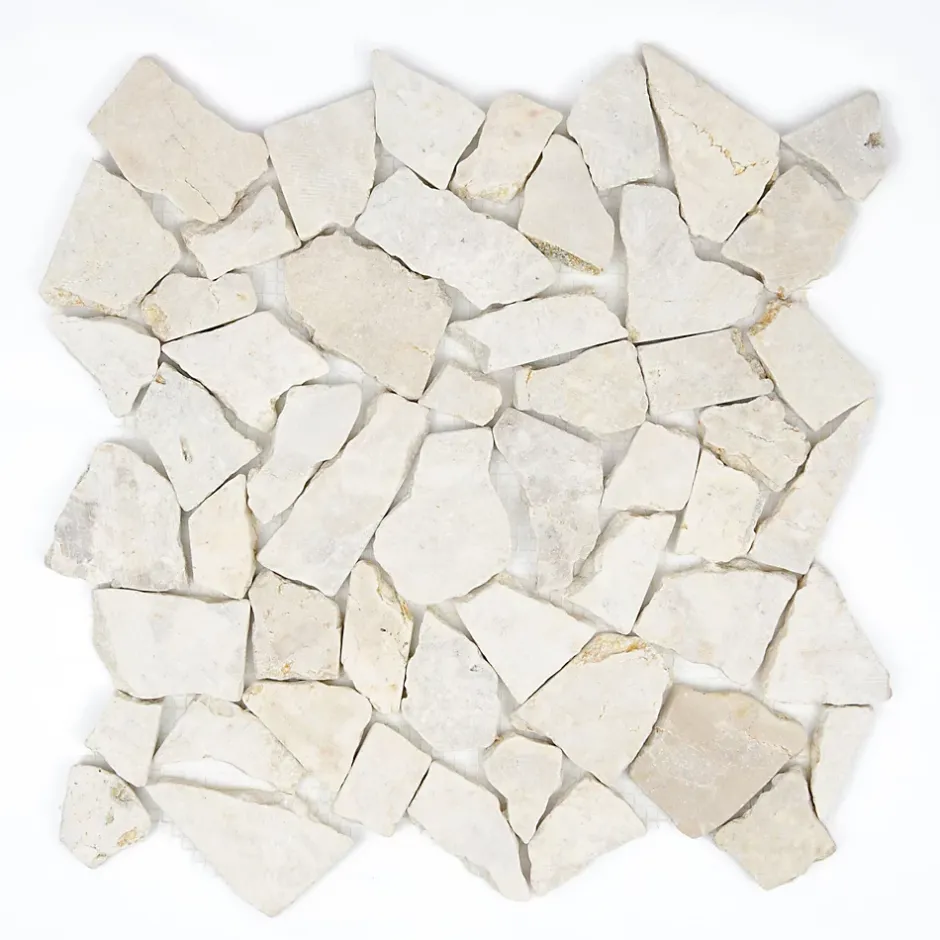 - Pré-assemblée sur trame, cette mosaïque en marbre se pose facilement, garantissant un alignement parfait pour un résultat professionnel.