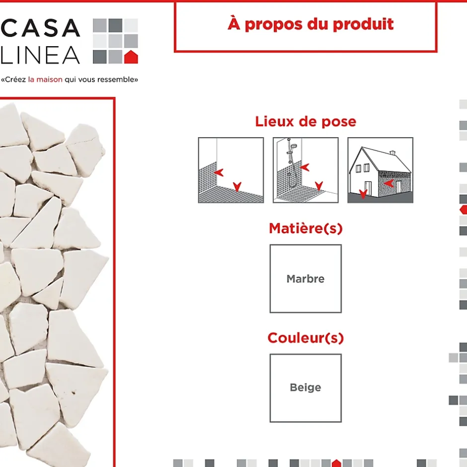 - Que ce soit pour un style classique ou moderne, cette mosaïque en marbre s’intègre harmonieusement à tous les projets décoratifs.