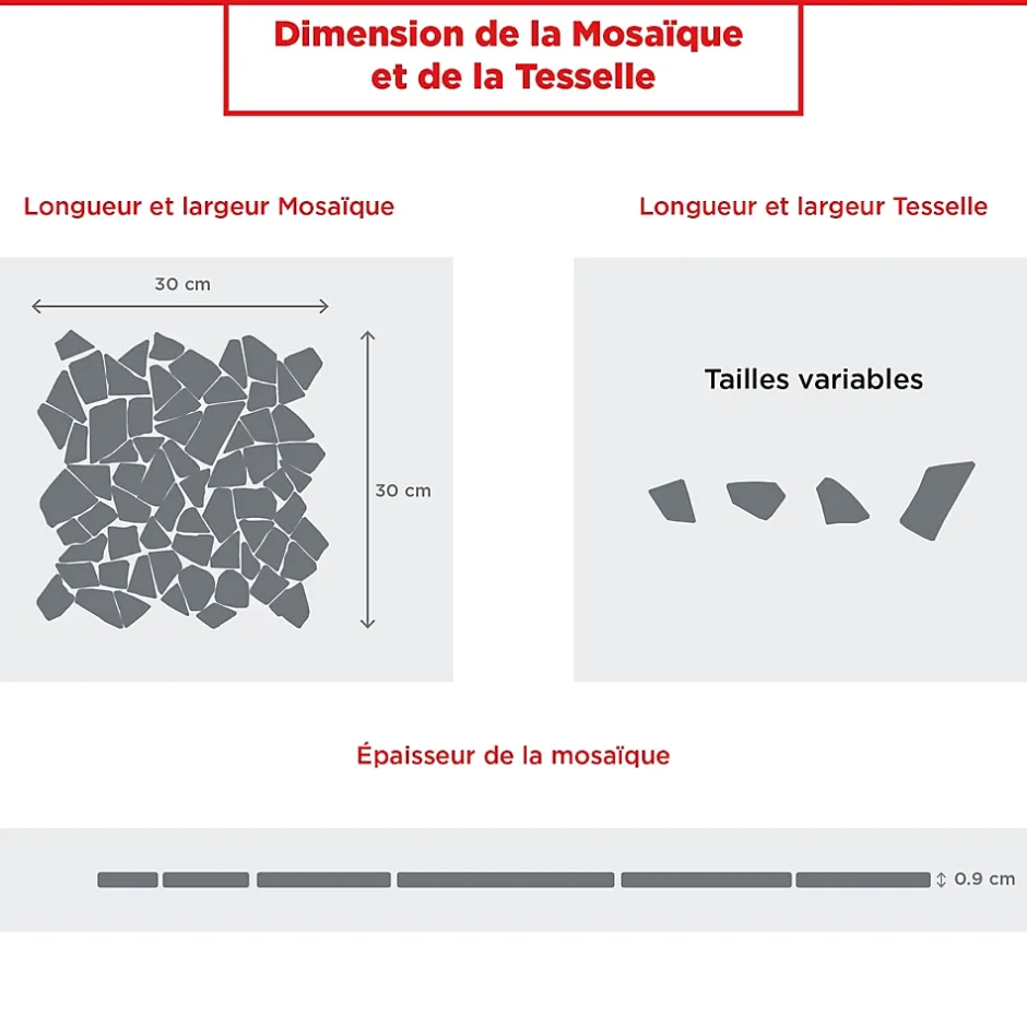 - Conçue pour résister à l’humidité et aux températures extrêmes, cette mosaïque est idéale pour des applications en extérieur.