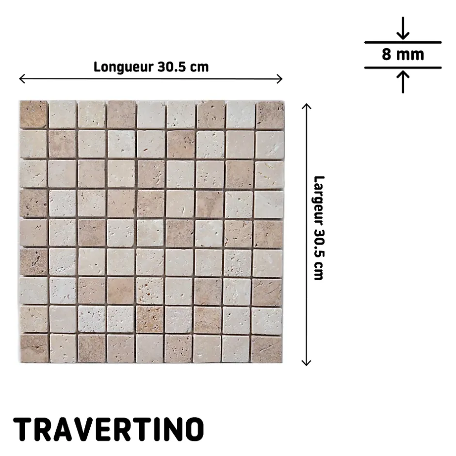 La mosaïque Travertino beige apporte polyvalence et style à vos intérieurs. Ces carreaux carrés texturés et mats peuvent être utilisés seuls ou combinés avec d’autres carreaux Travertino pour un design coordonné. Fabriqués en pierre naturelle de qualité supérieure, ils offrent durabilité et esthétisme. Compatibles avec le chauffage au sol, ces mosaïques assurent un rendu harmonieux, élégant et fonctionnel sur murs et sols intérieurs, créant un style travertin intemporel qui valorise chaque espace avec sophistication et authenticité.
