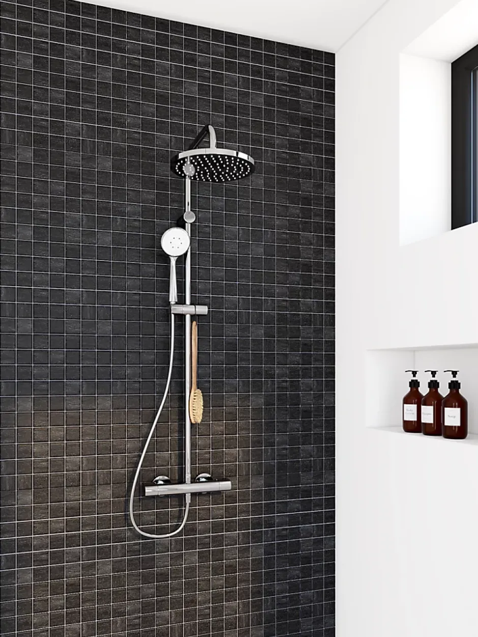 Cette mosaïque noire aspect pierre vous permettra de créer des frises ou des décors dans toutes les pièces de votre maison, voir même sur votre terrasse ou dans votre garage ! Pensez à l’associer au carrelage noir 30 x 60 cm Oikos de la même série