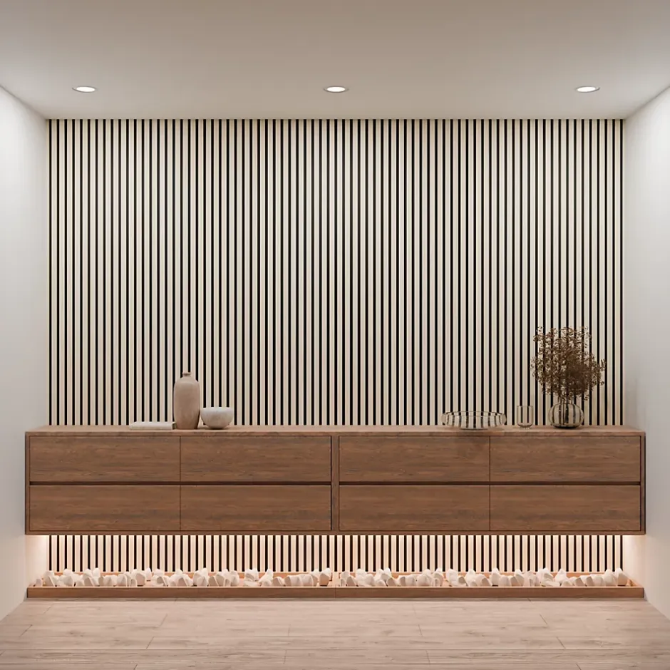 Grâce à son feutre acoustique haute densité, le panneau réduit efficacement la réverbération et améliore le confort sonore dans la pièce. Les lattes décoratives en bois apportent une touche moderne et chaleureuse tout en absorbant les nuisances sonores. Conçu en MDF robuste, il offre une grande résistance et un habillage mural durable de qualité. Son format standard de 240 x 60 cm permet une installation rapide et une transformation immédiate de vos murs. L’association du bois et du feutre acoustique combine élégance décorative et performance phonique. Adapté à tous les styles d’intérieur, il s’intègre facilement dans une décoration moderne ou classique. Son système de fixation simple rend la pose accessible même sans compétences particulières en bricolage. Fabriqué avec des matériaux résistants et respectueux de l’environnement, il allie esthétique et durabilité. Sa finition effet bois réaliste apporte chaleur et authenticité à vos espaces intérieurs. En réduisant les échos et en embellissant vos murs, il améliore à la fois le confort sonore et l’esthétique de votre pièce.