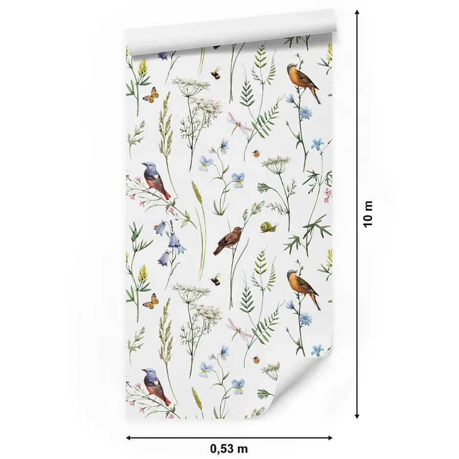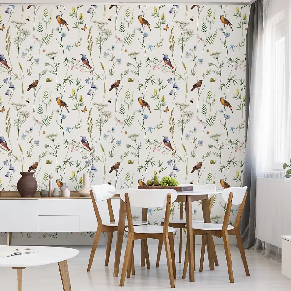 Muralo Papier Peint Intissé Pour Salon OISEAUX Fleurs Feuilles Nature