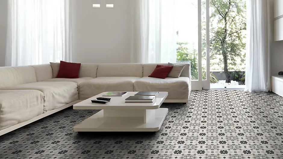 - L’effet carreau de ciment multicolore s’intègre harmonieusement dans différents styles de décoration.