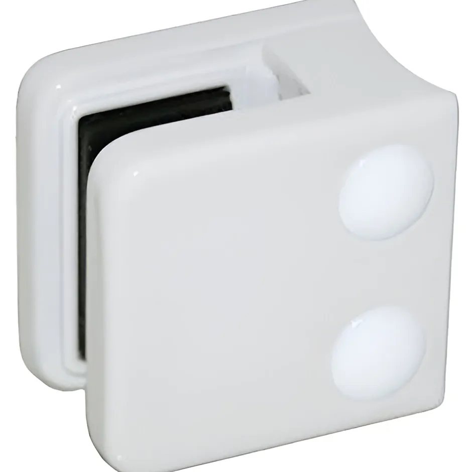 - Chaque boîte contient 4 pinces à verre, 8 cales caoutchouc adaptées à l’épaisseur de verre choisie (livrées dans un sachet séparé), 8 cache-vis couleur blanche, 4 vis de fixation CHC – M8 x 20 mm – acier zingué