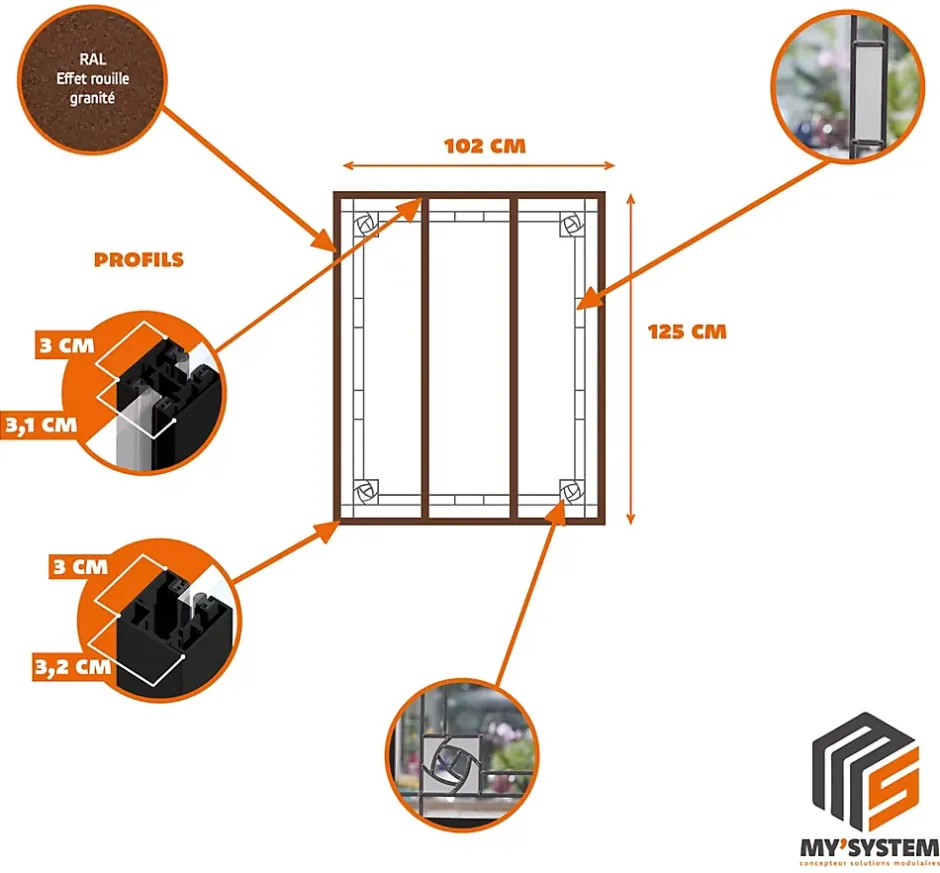 Largeur d’ouverture préconisée : 102,5 cm | Hauteur d’ouverture préconisée : 125,5 cm