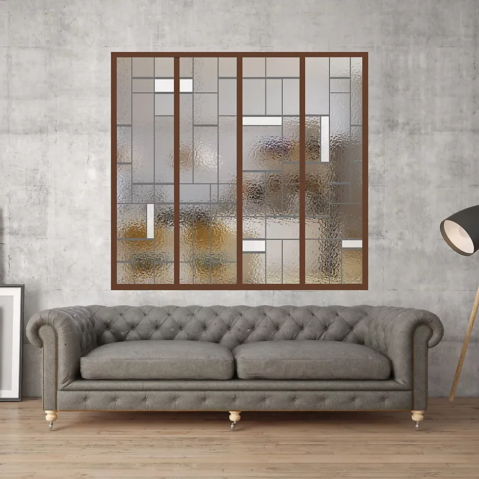 MySystem Verrière 4 verres Chicago - L x H : 135 x 125 cm - Laqué effet rouille granité - verre Sahara inclus