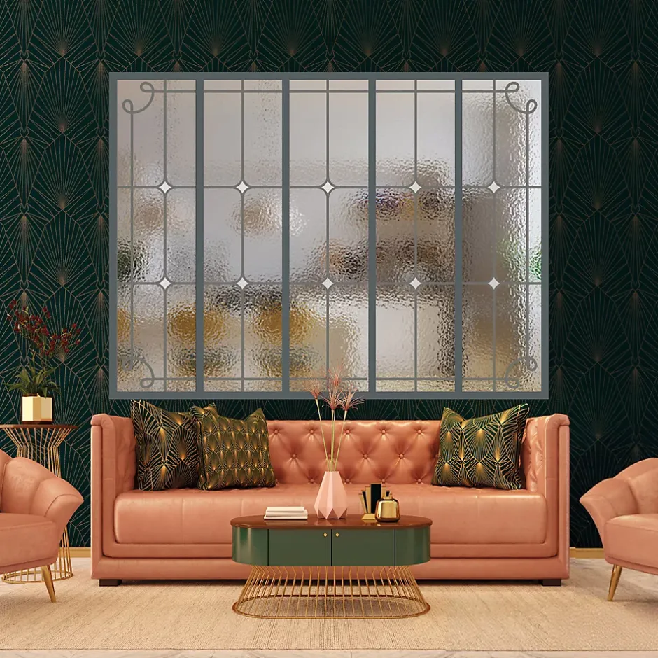 MySystem Verrière 5 verres Curly - L x H : 168 x 125 cm - Laqué gris 7016 granité - verre Sahara inclus