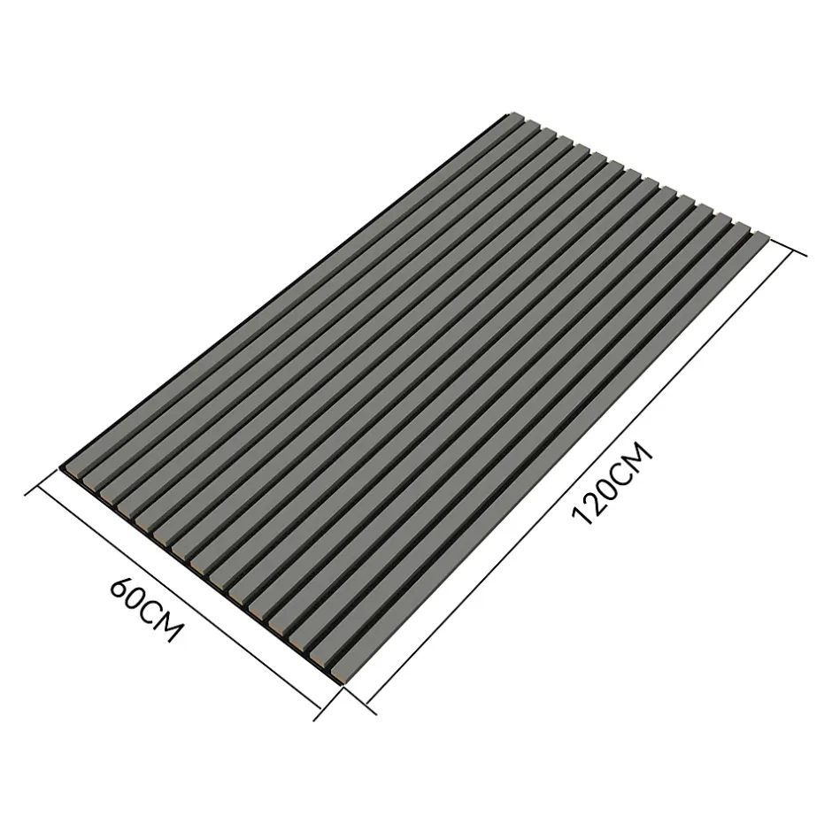 Lot de 2 panneaux acoustiquesLes 2 panneaux de ce lot conviennent à tous types de murs et plafonds, améliorant ainsi l’acoustique de votre chambre ou de votre espace. Leur finition design crée une atmosphère agréable et offre une solution pratique pour optimiser l’acoustique de votre environnement.Description :- ensemble de 2 panneaux pour mur ou plafond- améliore l’acoustique et assure l’isolation sonore- rajoute une touche scandinave à votre intérieur- possiblité de découper les panneaux selon vos besoins- installation facile à vis ou colle- 15 lattes décoratives par panneau- coefficient de réduction du bruit NRC 0,8 et classe d’absortion acoustique BDimensions :- totates (Hauteur x Largeur x Profondeur) : 120 x 60 x 2,1 cm- largeur lattes : 27 mm- espace entre lattes : 13 mm- épaisseur lattes : 12 mm- pièces de montage : 9 mm- surface totale : 1,44 m²Matière :- lattes : MDF contreplaqué- panneau de suspension : PET feutre acoustiqueCouleur :Effet chêne gris clairA noter :Pour une installation au plafond, il est recommandé d’utiliser des vis ainsi que de la colle.Contenu de la livraison :2 x panneauxProduit de la marque :NEU.HOLZ