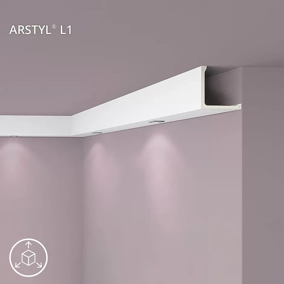Numéro d’article L1 Type de produit Moulure couvrante Fabricant NMC Pays / région de production Belgique Collection ARSTYL Modèle no. ARSTYL | L1 Matériau Mousse de polyuréthane rigide Version pas flexible Longueur (cm) 200 Largeur (cm) 15 Hauteur (cm) 15 Couleur de base blanc Style moderne Adhésif approprié ADEFIX Plus (intérieurs, pièces humides et joints), ADEFIX (enduit) Propriétés du matériau léger, solide, indéformable Finition de surface prétraité Apprêt apprêt blanc mat sur base acrylique Approprié pour intérieurs Caractéristiques spéciales approprié pour l’éclairage direct